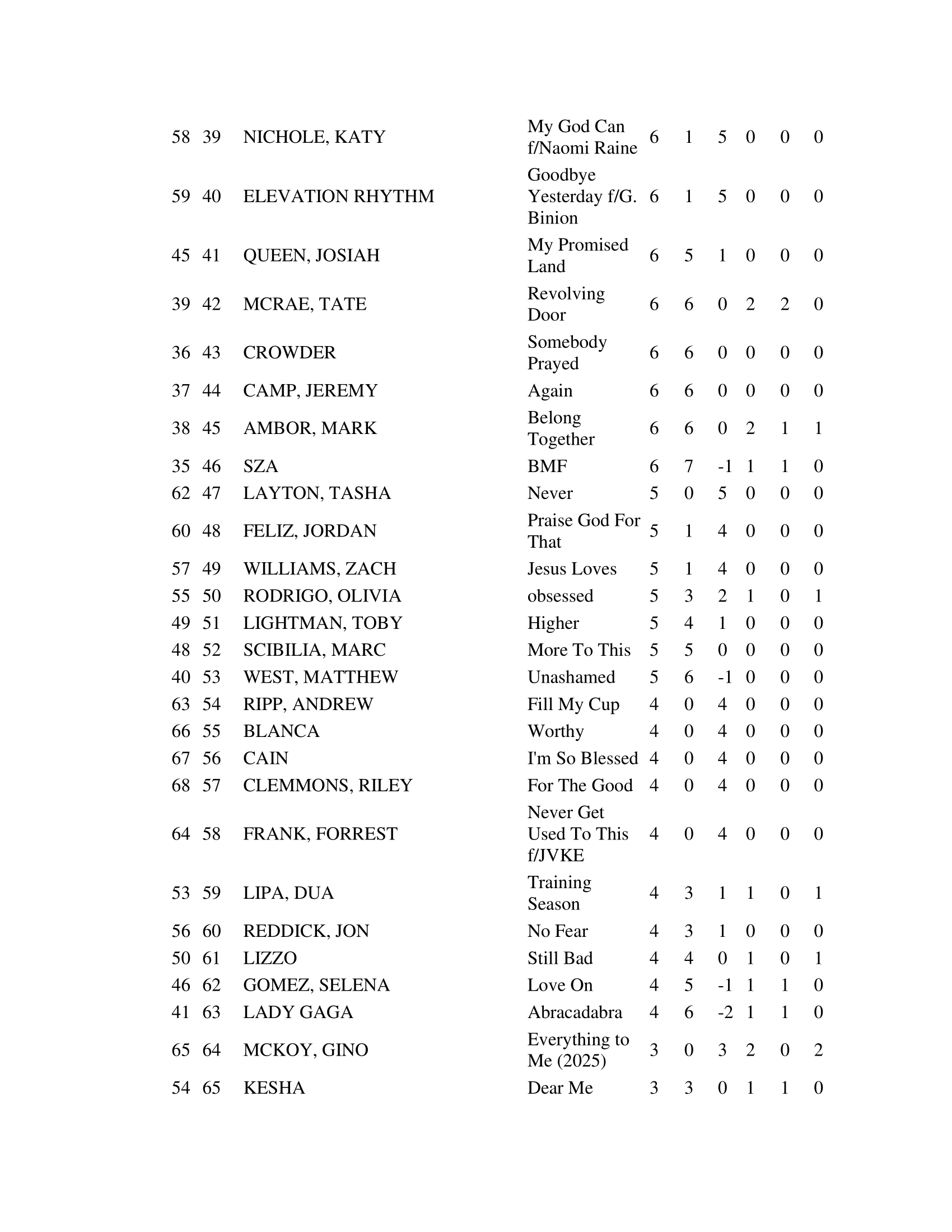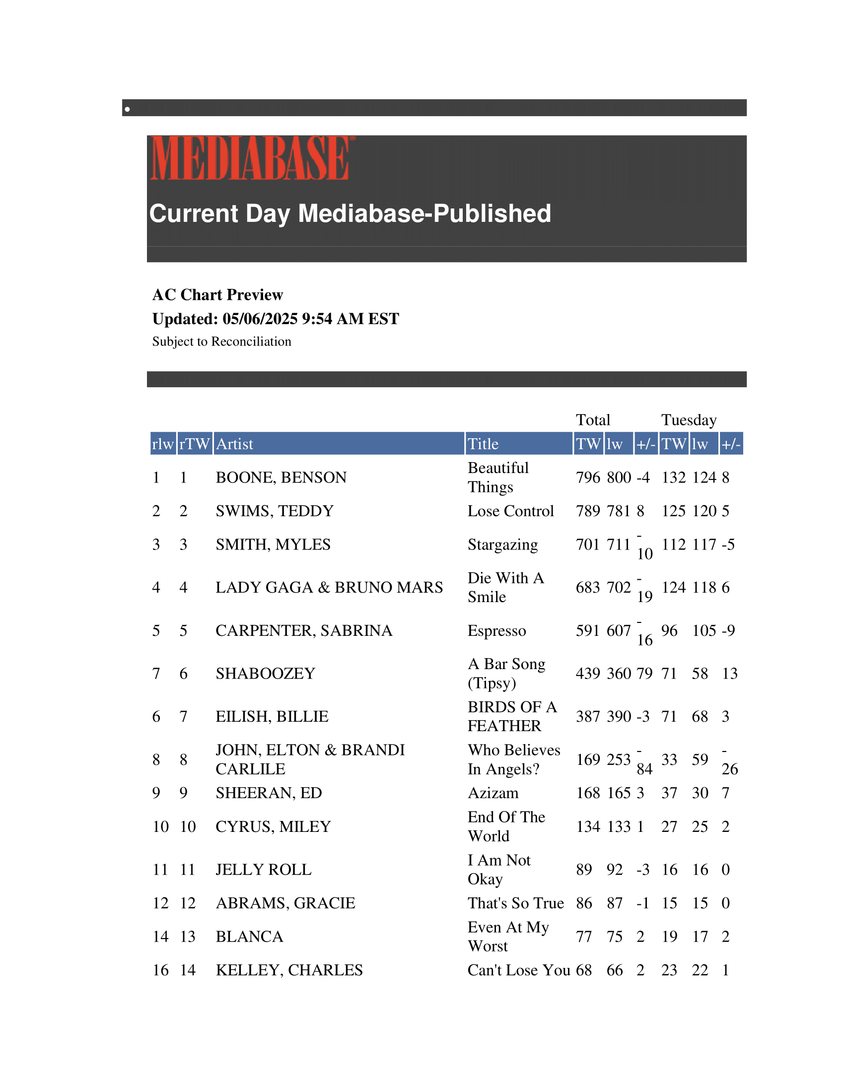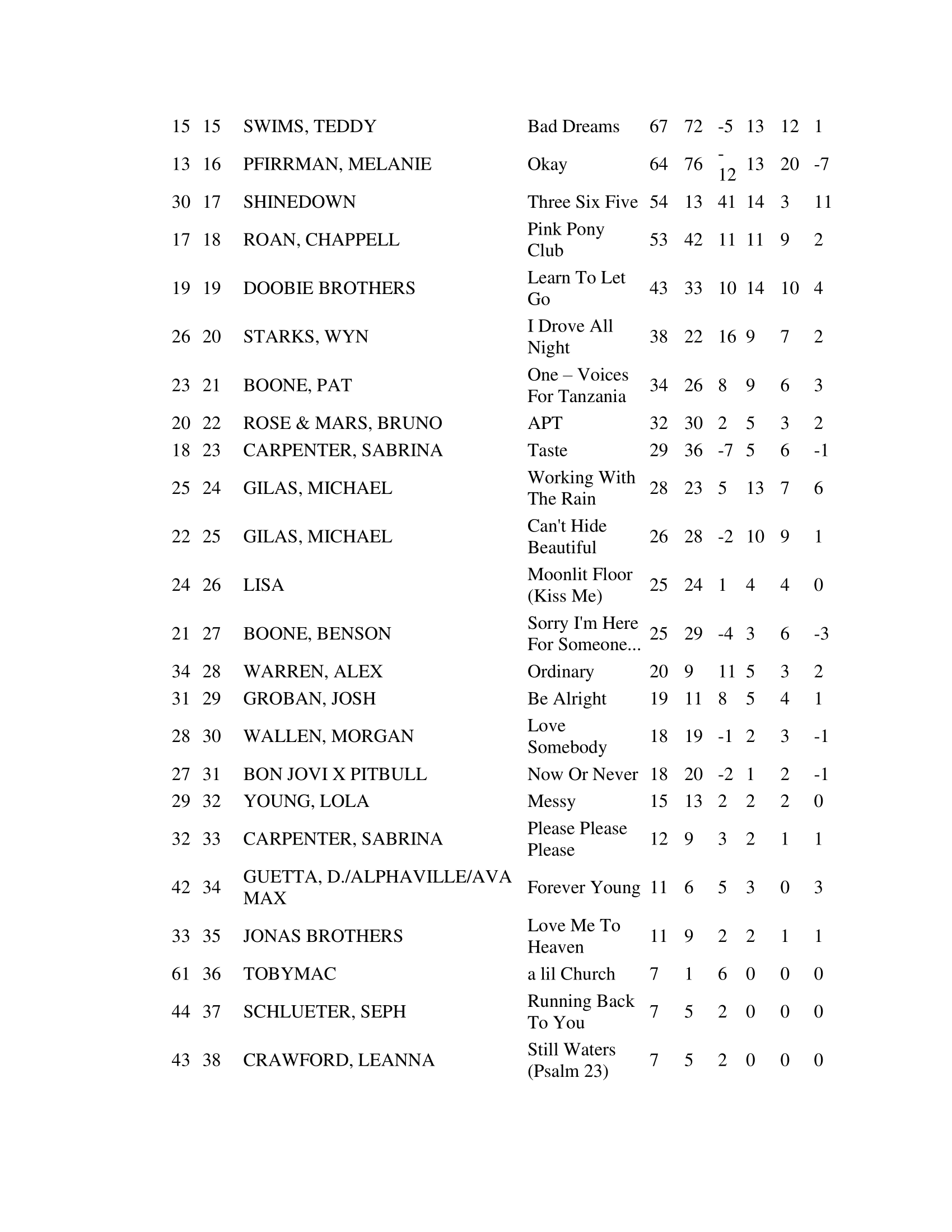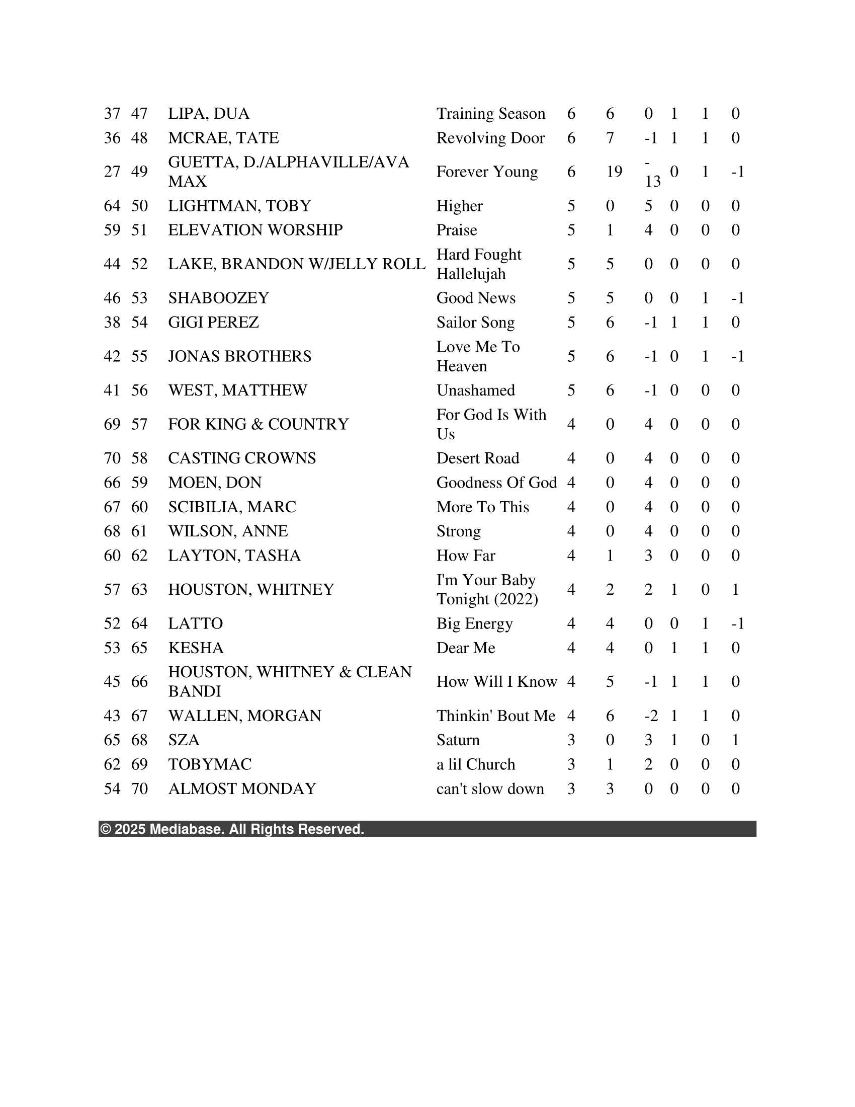 | Can’t Hide Beautiful | — | Hot 100 #43, AC #17 | Top newly added pop radio track |